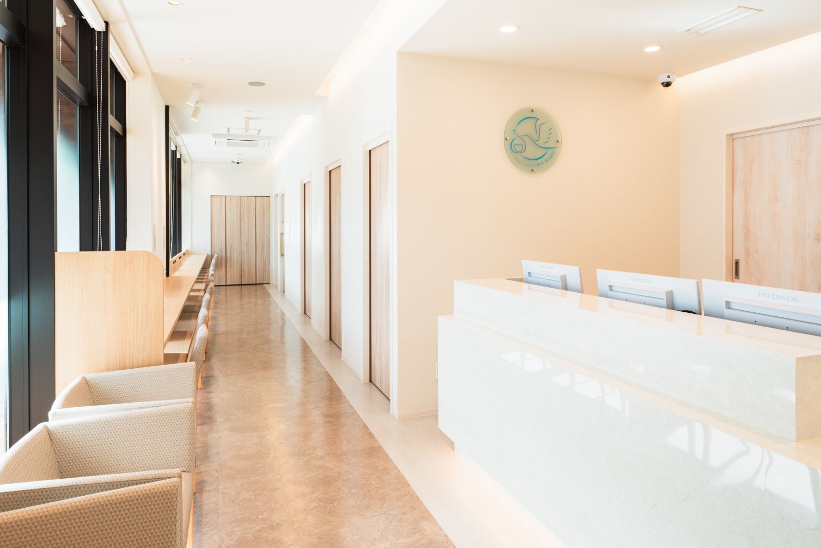 写真はミアグレースクリニック新潟の受付、待合室の風景です
